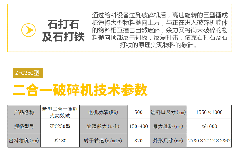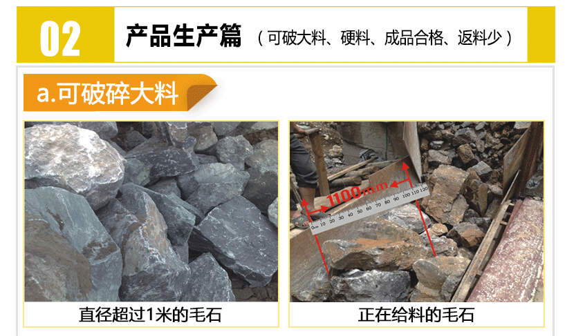 【進(jìn)料粒度】: ≤350mm-1000mm 【生產(chǎn)能力】:40-400t/h